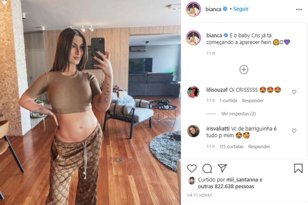 Diante da imagem, os seguidores e amigos não deixaram de elogiar Bianca Andrade. “Mãe mais linda”, elogiou Aline Gotschalg. “Gente tá linda”, disse Gabriela Pugliesi. “Você de barriguinha é tudo pra mim”, elogiou um internauta. “O poderoso chefinho aí”, brincou outra.