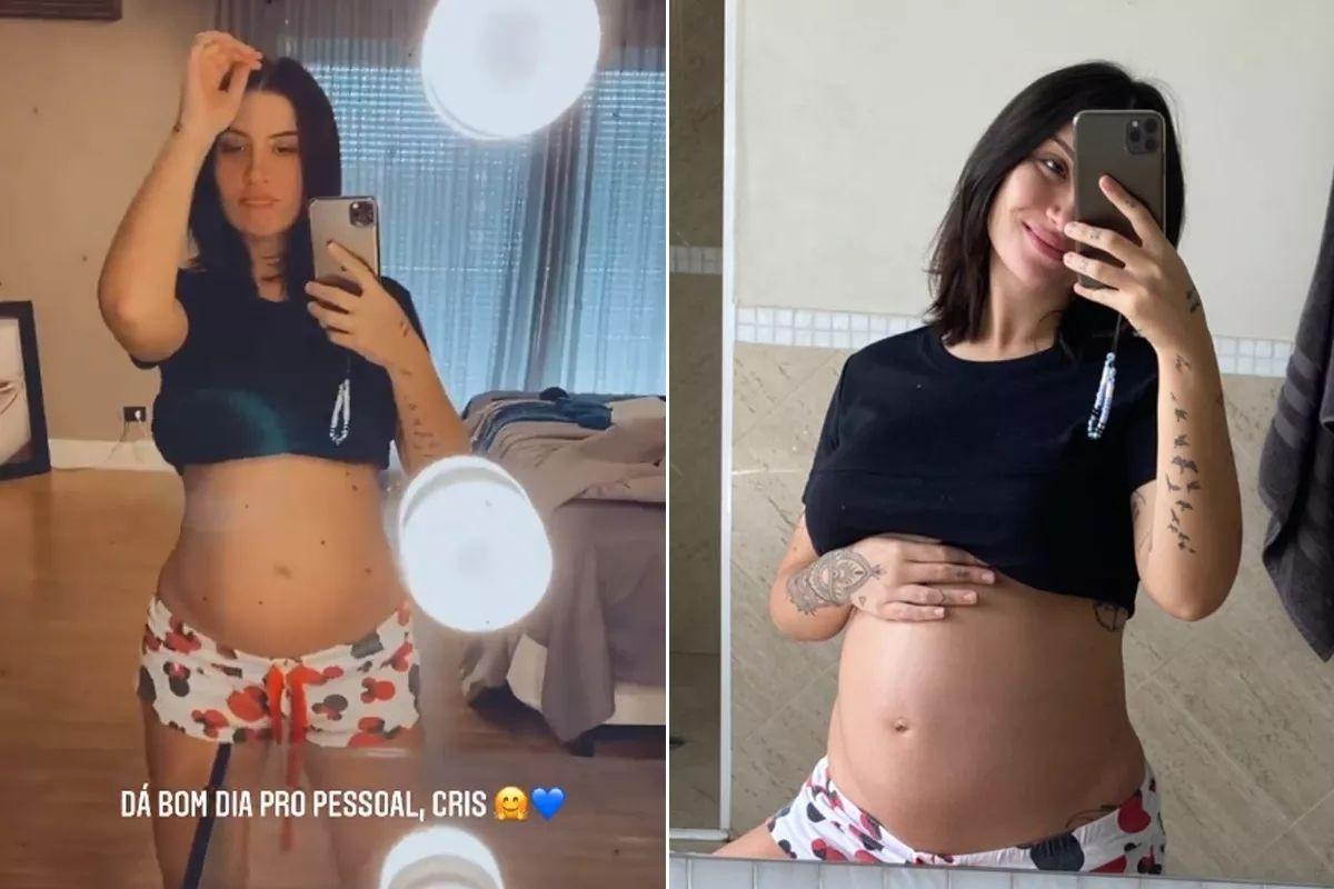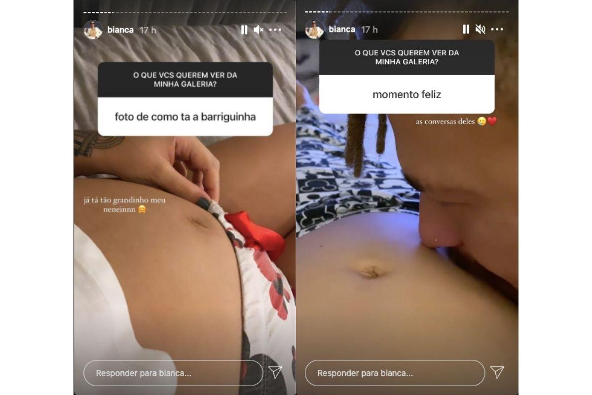 Nos stories da rede social, Bianca Andrade apareceu dançando de shortinho e camiseta, mostrando o tamanho da barriga. “Dá bom dia pro pessoal, Cris”, se referindo ao nome do bebê. “Estamos chegando nos seis meses e meu neném está enorme”, disse ela, emocionada.