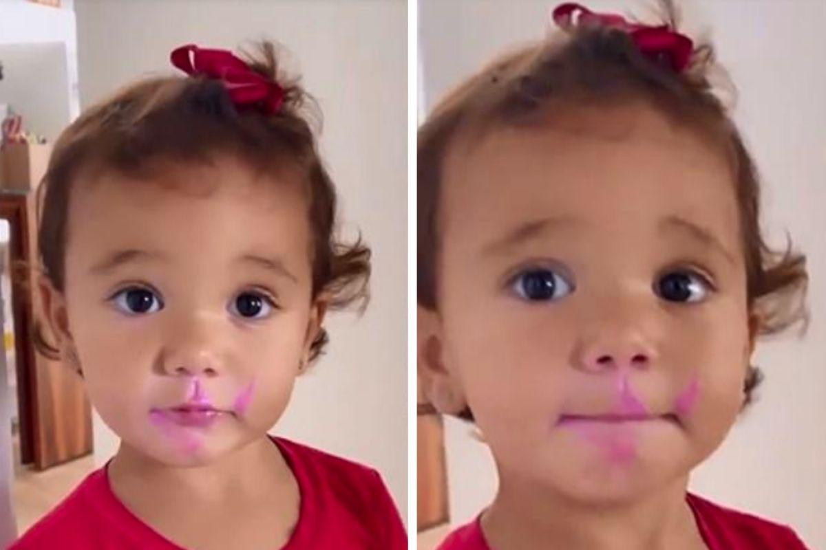 Nas imagens, a menina que está se divertindo com o batom da mãe. “O que você está fazendo, deixa eu ver seu rosto? O que é isso que você passou?”, perguntou insistentemente Ticiane enquanto Manuella olhava para o objeto.