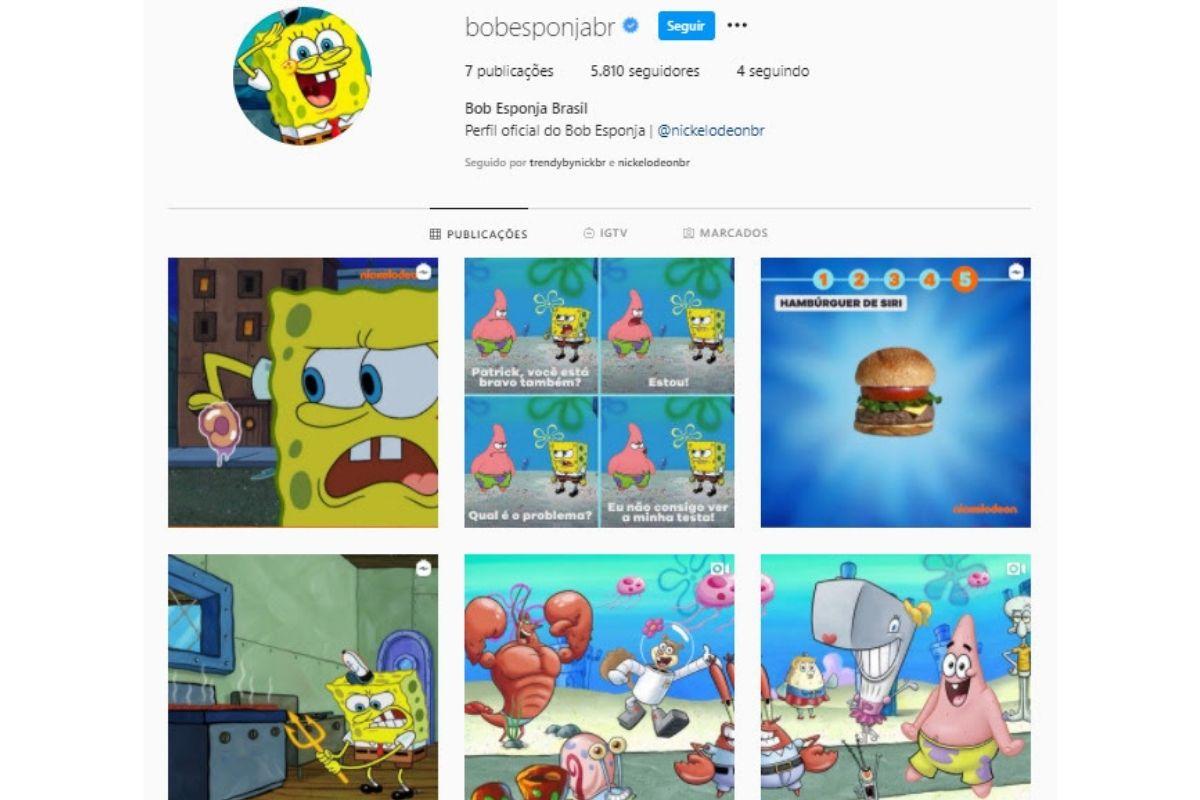 Para conhecer o perfil, basta procurar por @bobesponjabr na barra de busca do Instagram. “Reza a lenda que quem comentar mais neste post se tornará o imperador dos mares!”, brinca Bob Esponja em uma das publicações. “Eu não consigo beijar o meu cotovelo!E você, o que te deixa chateado?”, escreveu o personagem em uma tirinha ao lado de Patrick.