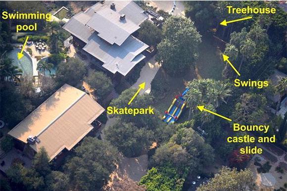 O astro de Hollywoood decidiu apelar e fazer uma mudança surpreendente em sua casa: transformou sua mansão em um parque de diversões: instalou uma enorme piscina, um castelo inflável com tobogã, uma rampa de skate, balanços e uma casa na árvore para que seus filhos se divirtam.