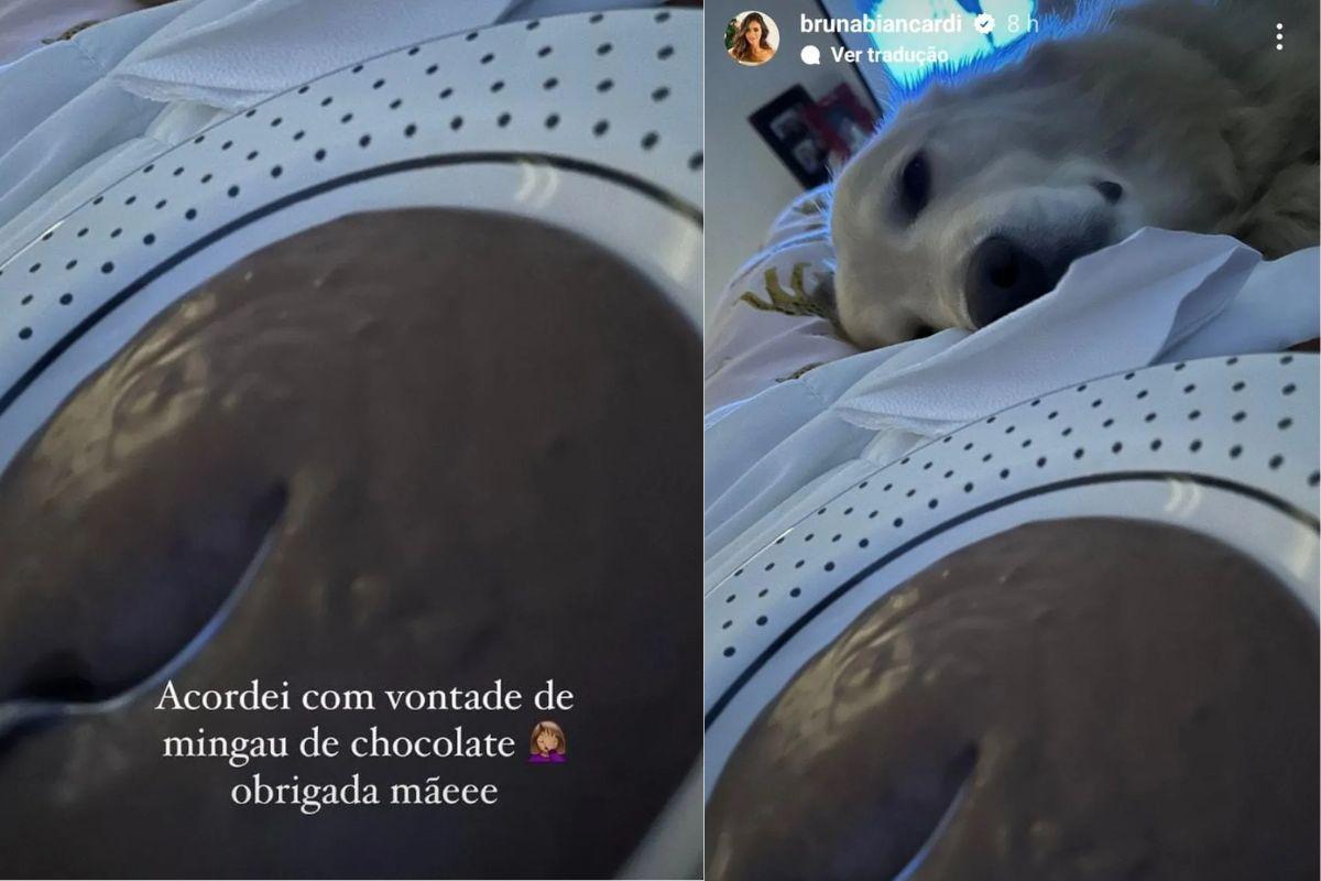 Por meio dos stories do Instagram, Bruna Biancardi compartilhou que acordou com uma grande vontade de comer mingau de chocolate, com isso a mãe dela ajudou fazendo o prato que a filha estava com vontade: “Obrigada mãe”, escreveu a influenciadora digital nos stories em que mostrava o mingau de chocolate que recebeu enquanto ainda estava na cama.