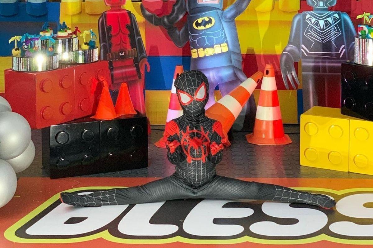 Batman, Homem Aranha, Pantera Negra, Mulher Maravilha, Coringa, Superman… Todo mundo reunido pra cantar #ParaBLESS pro aniversariante mais lindo do mundo!!! Tudo de mais lindo e incrível pro meu amor comemorar seus seis aninhos. Te amo filho!!! Quer dizer…MILES MORALES!!! Rsrs”, escreveu a mãe.