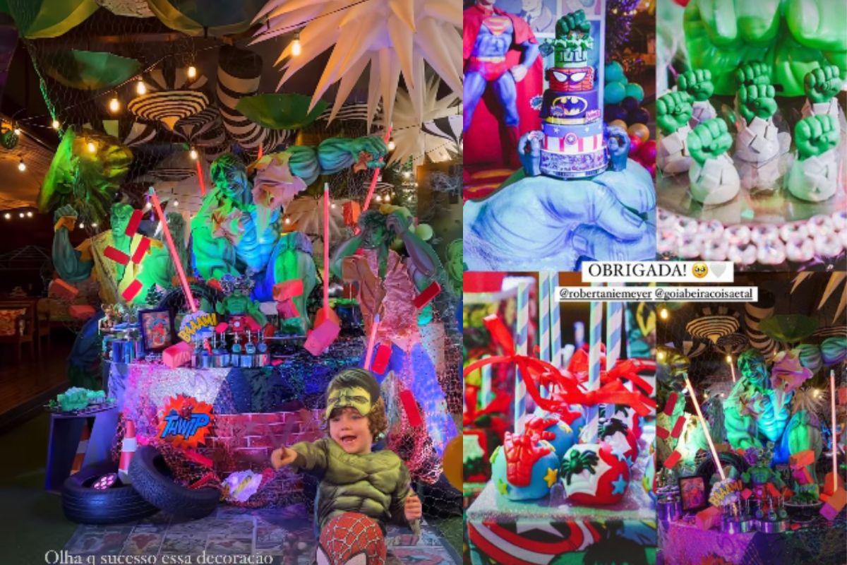 A decoração estava inteira com os personagens da Marvel estampados. A festa contou com doces personalizados, um bolo de quatro andares e até mesmo com a presença de cosplayers dos personagens. Giovanna Ewbank compartilhou fotos do evento por meio dos stories em seu pefil no Instagram.
