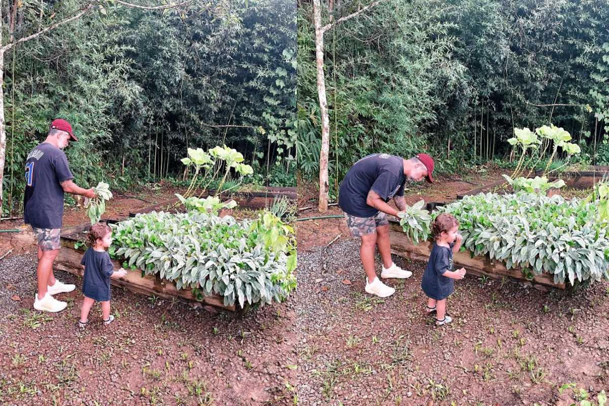 Os seguidores também elogiaram o momento entre pai e filho: “Que lindo gente, criar os filhos dentro dessa natureza e comendo saudável comida de verdade! Parabéns aos pais maravilhosos que vocês são”, “É a melhor forma de ensinar o amor pela natureza!”.