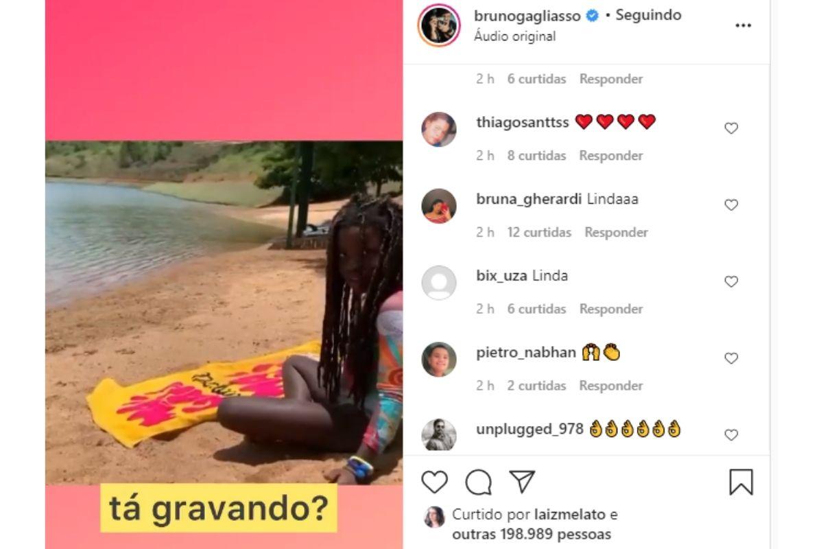 O ator Bruno Gagliasso usou as redes sociais nesta quarta-feira, 20 de janeiro, para compartilhar um vídeo cheio de amor ao lado da família. Nas imagens, Titi, a filha mais velha do casal, aparece brincando na areia. Enquanto brinca, ela percebe que o pai está filmando.