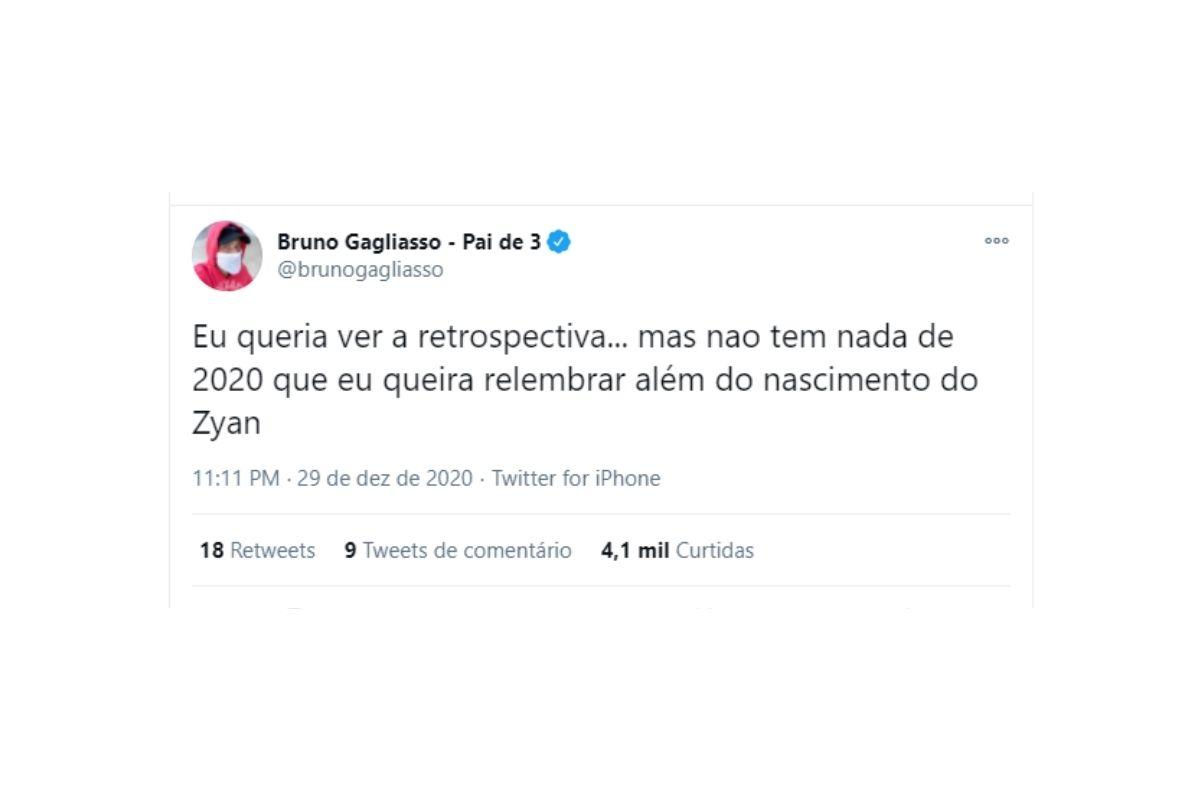 Pelo Twitter, o ator contou que deste ano quer se lembrar apenas do nascimento do terceiro filho, Zyan, fruto do relacionamento com Giovanna Ewbank. “Eu queria ver a Retrospectiva… Mas não tem nada de 2020 que eu queira relembrar além do nascimento do Zyan“. Eles também são pais de Titi, de sete anos, e de Bless, de seis.