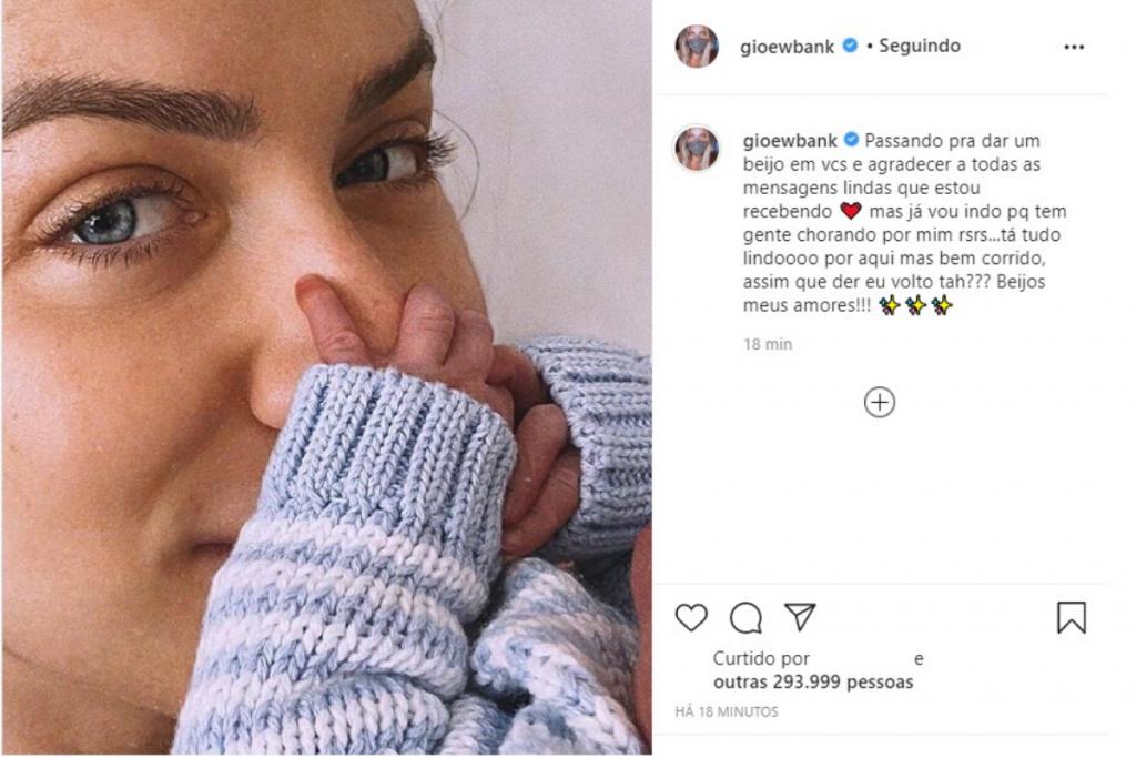 Na legenda, Bruno escreveu: “Gio é forte! Forte e ponto. Ela é uma leoa, mas isso ainda é pouco para descrever sua potência. Sua força é o amor! É por esse sentimento infinito que ela carrega no peito que tudo ao redor se transforma. É com amor, e pelo amor, que ela dedica-se a tudo na vida. Sou um cara de sorte. Nenhuma palavra é capaz de descrever minha admiração por essa mulher. Hoje sou um homem ainda mais apaixonado pela mulher da minha vida. E amanhã, certamente, estarei ainda mais. Eu te amo”.