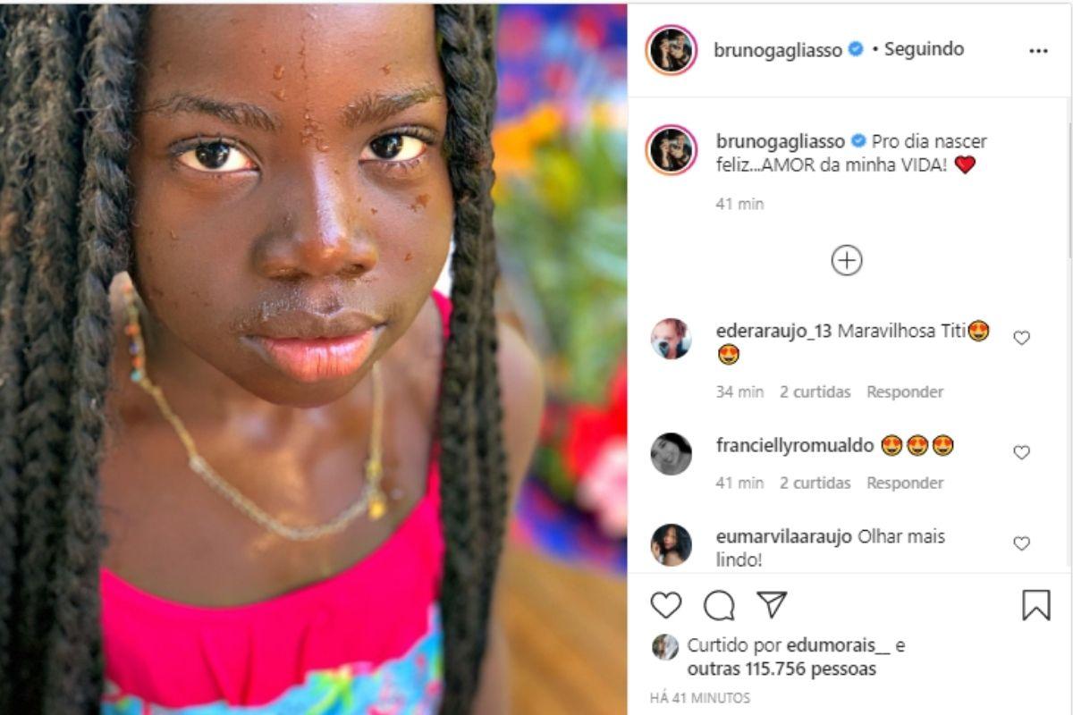 Na legenda da publicação, Bruno Gagliasso se derreteu pela filha. “Pro dia nascer feliz…AMOR da minha VIDA!”, escreveu ele. Os seguidores não dispensaram os elogios para o close da menina. “Maravilhosa Titi”, escreveu um. “Olhar maravilhoso”, ressaltou outra. “Uma princesa”, ressaltou uma terceira.