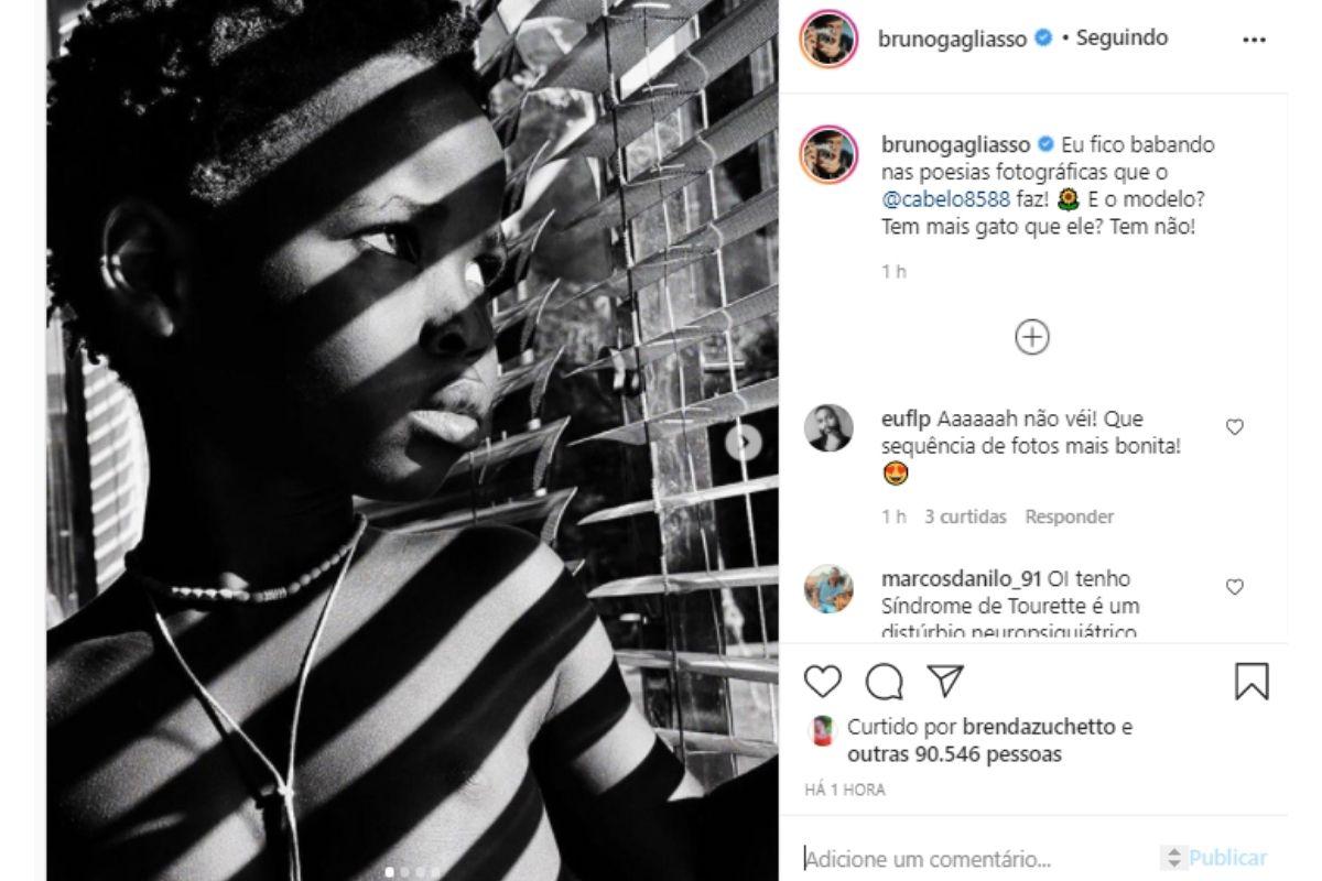 “Eu fico babando nas poesias fotográficas que o @cabelo8588 faz! E o modelo? Tem mais gato que ele? Tem não”, escreveu o famoso ao publicar as fotos. Os internautas amaram a publicação e logo começaram a comentar. “Que sequência de fotos mais bonitas!!”, elogiou uma seguidora. “Eu babo muito nesse Bless”, escreveu outra. “Esse aí tem estilo! Lindão”, comentou uma terceira.