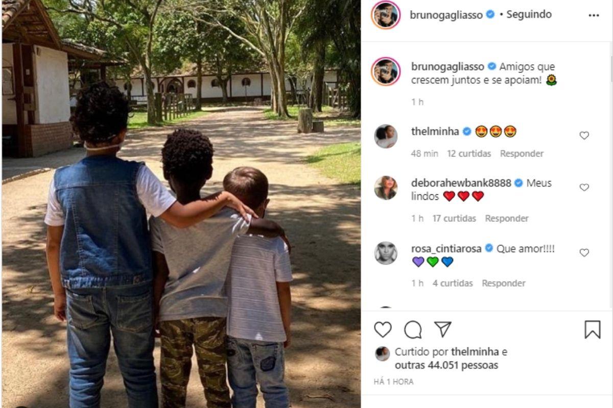 O ator e influenciador digital Bruno Gagliasso usou as redes sociais no último domingo, 25 de outubro, para compartilhar uma foto cheia de amor entre Bless e dois amigos. “Amigos que crescem juntos e se apoiam!”, escreveu o famoso ao publicar a imagem. Bruno Gagliasso também é pai de Titi e Zyan, fruto do relacionamento com a apresentadora Giovanna Ewbank.