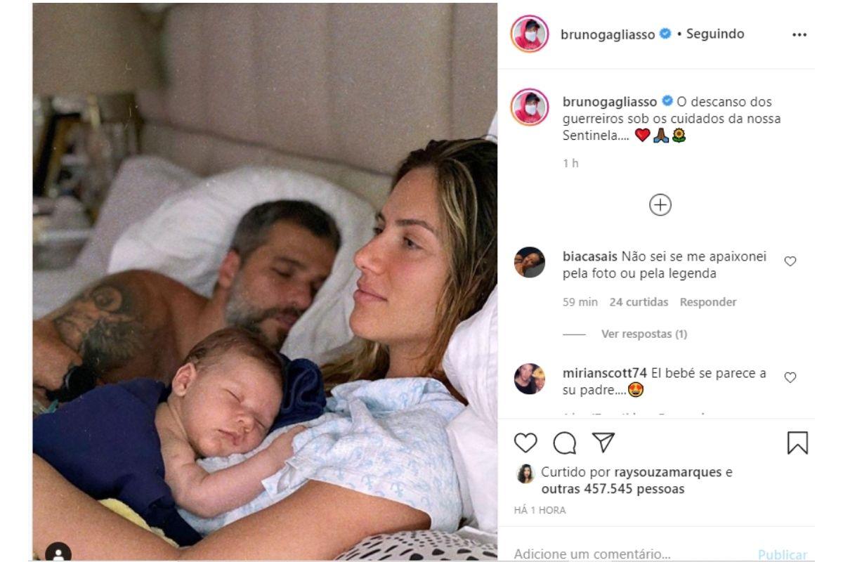 Bruno brincou na legenda da publicação, em que a atriz e apresentadora aparece acordada enquanto os dois dormem, cumprindo o papel de “guarda” da dupla.”O descanso dos guerreiros sob os cuidados da nossa Sentinela”, escreveu Gagliasso.