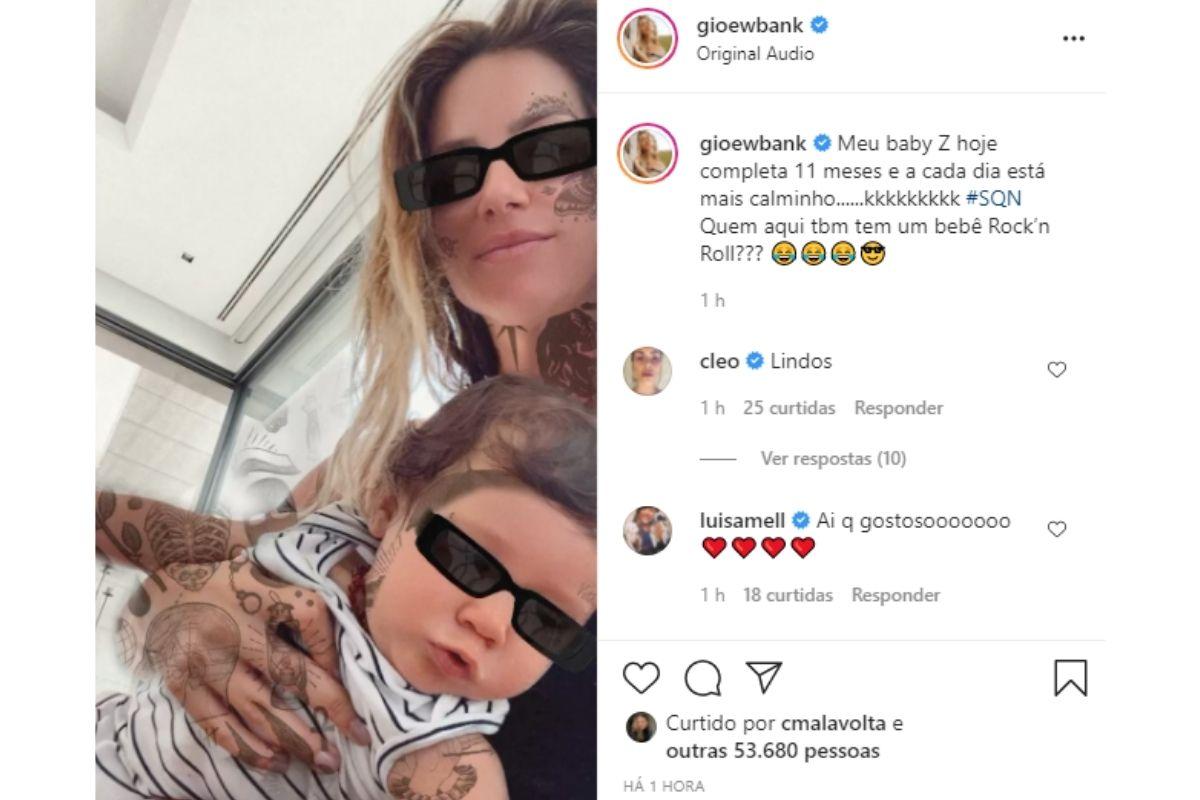 “Meu baby Z hoje completa 11 meses e a cada dia está mais calminho……kkkkkkkkk #SQN Quem aqui tbm tem um bebê Rock’n Roll???”, brincou ela, ao compartilhar o vídeo. Giovanna é casada com Bruno Gagliasso e os dois também são pais de Titi e Bless.