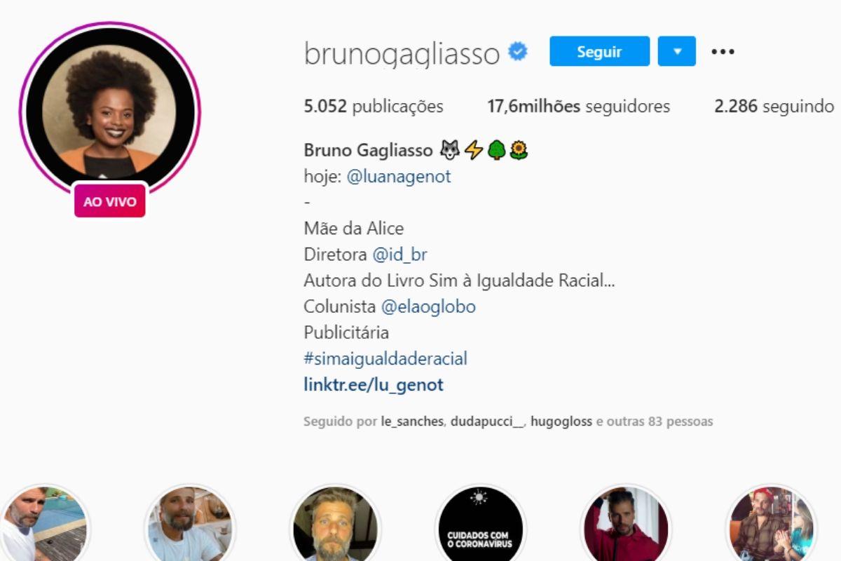 Neste sábado, 6 de junho, o ator Bruno Gagliasso entregou o comando do seu Instagram pessoal, para Luana Génot, publicitária e autora do livro “Sim a Igualdade Racial”. A ação que faz parte do projeto “Desafio1Porcento”, é de trazer visibilidade para uma mulher negra, para falar sobre sua experiencia como mãe, sua visão sobre os últimos acontecimentos racistas e trazer conhecimento, sobre questões que a sociedade precisa aprender sobre desigualdade.