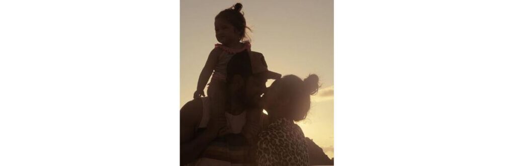 A segunda imagem é uma foto de Yanna com a filha no colo, elas estão de costas e de frente para a cachoeira. E Bruno que sempre ressalta a importância que a natureza tem na vida dele, de certa forma se declara: “Mãe floresta”