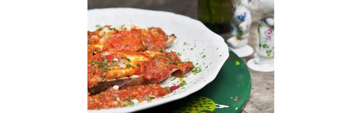 Em uma frigideira, juntar os tomates, o manjericão, o azeite de oliva, o sal e a pimenta e refogar levemente para que os ingredientes tomem gosto. Quebrar os dois ovos em cima e deixar cozinhar. Tostar as duas fatias de pão e deixar bem crocantes por fora e macias por dentro. Montar os ovos junto com os tomates em cima de cada fatia de pão. Se quiser, polvilhar parmesão.