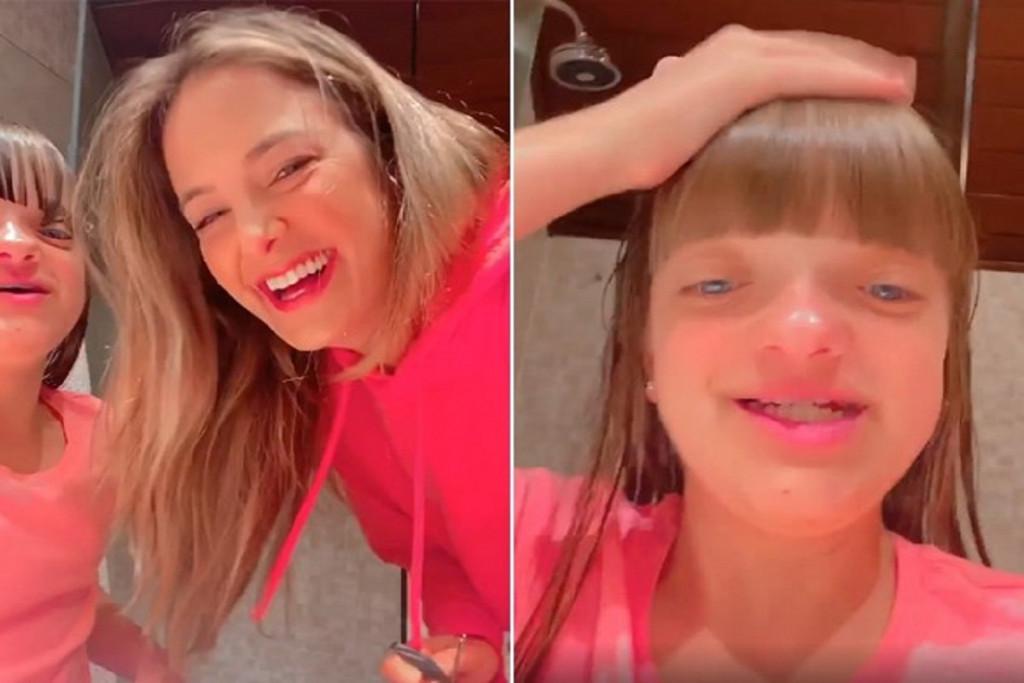 Rafaella reage ao ver franja cortada pela mãe, Ticiane Pinheiro (Foto: Reprodução / Instagram