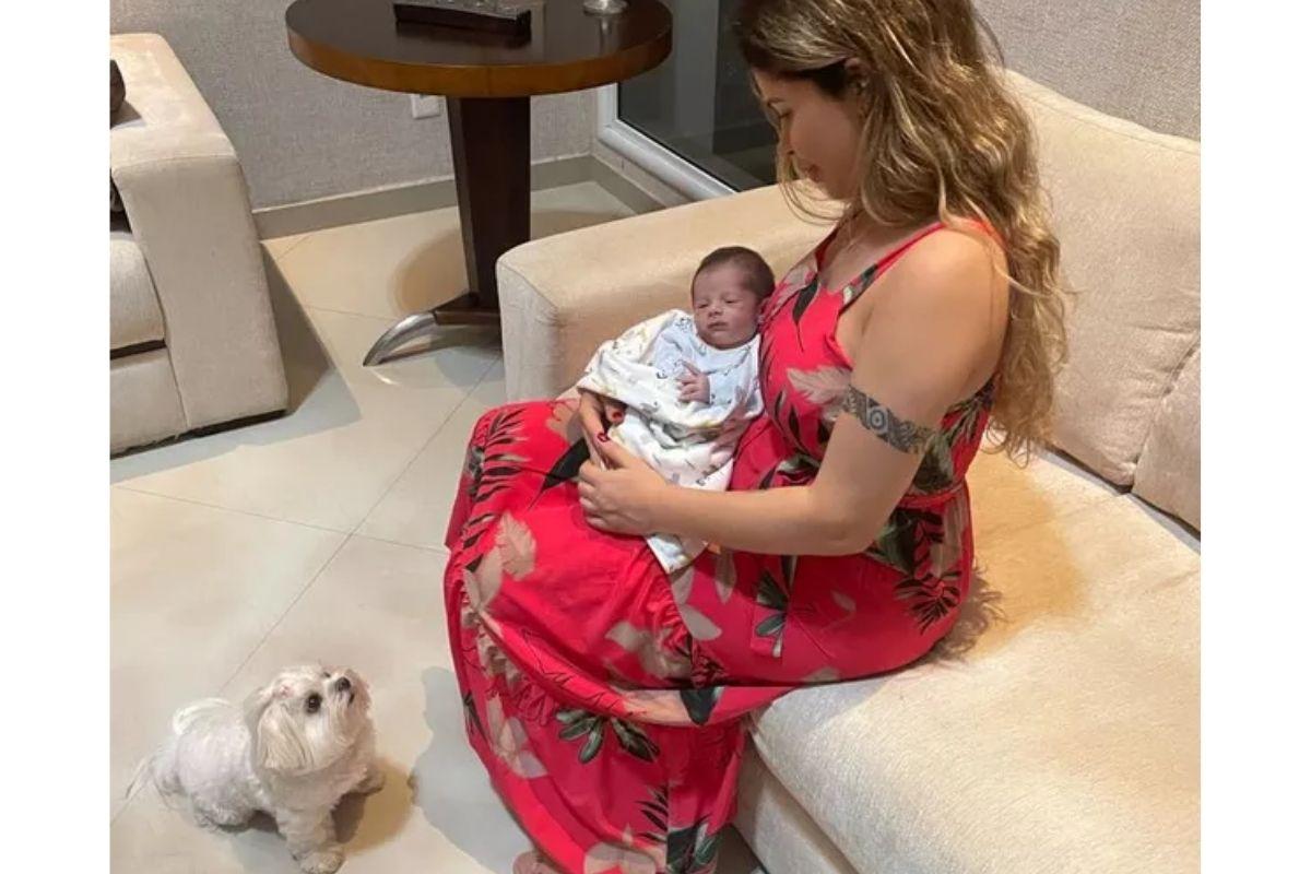 Na foto publicada por lá, Cacau aparece cuidando do bebê enquanto o cachorro da família, Cindy, é um fiel companheiro e até se apoia no sofá para espiar o menino. Segundo a mãe de primeira viagem, a mascote da família é extremamente atenciosa e carinhosa com o filho.