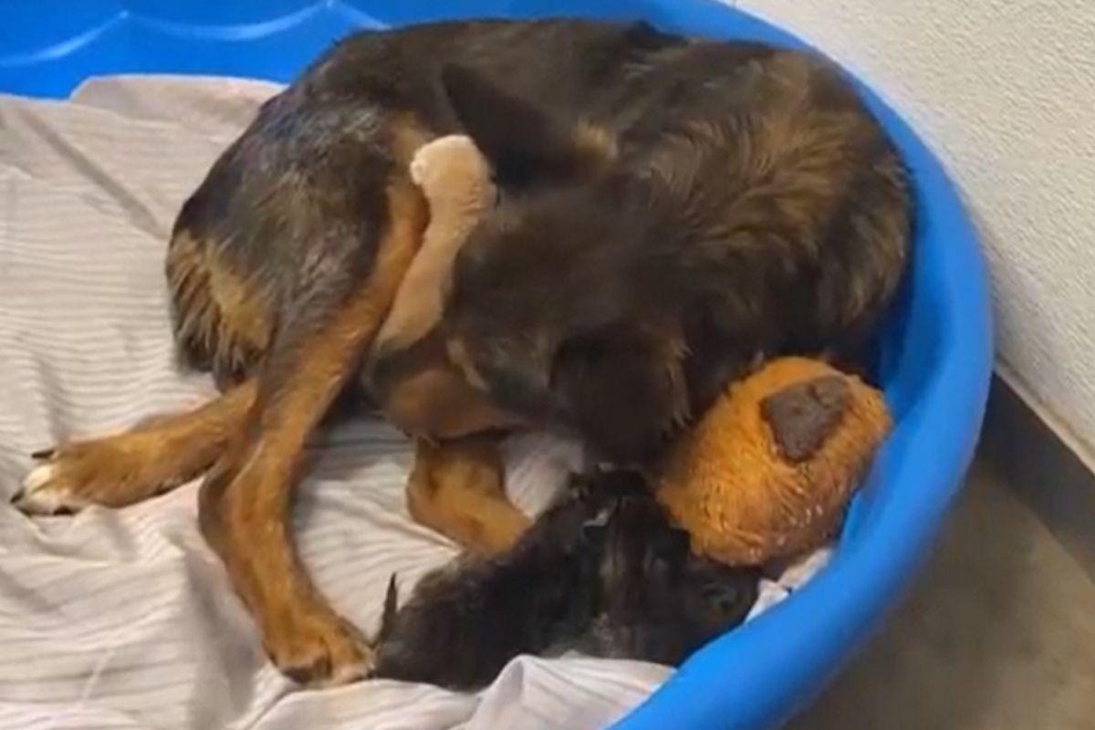 Georgia, uma mistura de pastor australiano, foi resgatada recentemente pelo Sunshine Dog Rescue, em Phoneis, EUA. A cachorra foi encontrada em um posto de gasolina na fronteira dos Estados Unidos com o México. Depois dos resgate, a equipe descobriu que ela estava grávida. Os bebês, no entanto, nasceram prematuramente e não conseguiram sobreviver.