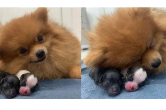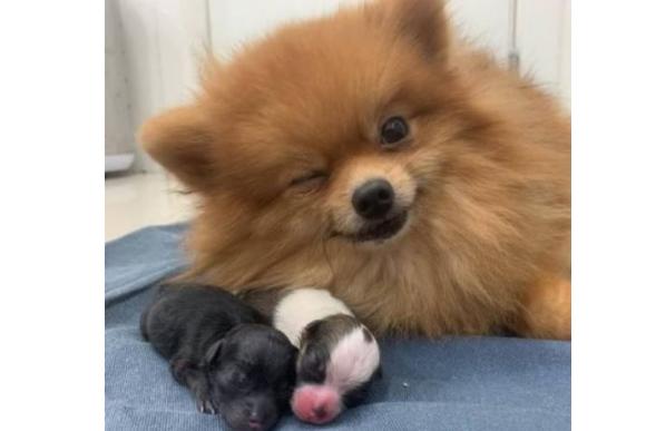 Uma cachorrinha foi fotografada depois de dar à luz com um sorriso superfofo no rosto! Ela é da raça lulu-da-pomerânia (ou spitz-alemão-anão), e se chama Luz! O nome combina perfeitamente com o momento né?