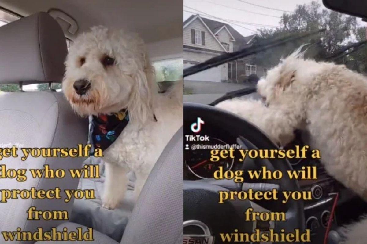 O cachorro não pensou duas vezes ao atacar o para-brisas! (Foto: Reprodução/ TikTok)