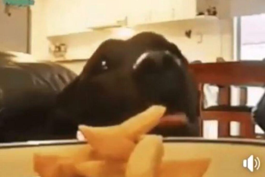 Um labrador foi pego roubando da dona batatas fritas depois dele deixar o alimento em cima da mesa. O cachorro mantêm uma certa distância e observa antes de pegar a comida e no momento em que ela sai da sala, a cena acontece. Ele pegou apenas uma batata, mas os internautas garantem que só fez isso para não levantar mais suspeitas.