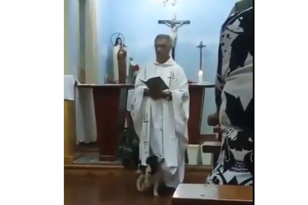 Semana passada, na cidade de Itacurubi, no Rio Grande do Sul, enquanto uma missa estava sendo celebrada, os fiéis e o padre foram surpreendidos com um visitante um tanto quanto diferente. Um cachorro entrou na Igreja e ainda se enrolou na túnica do padre, deixando a internet apaixonada pelo animal.