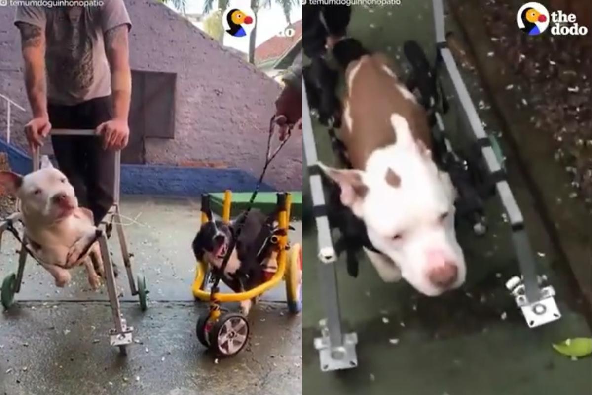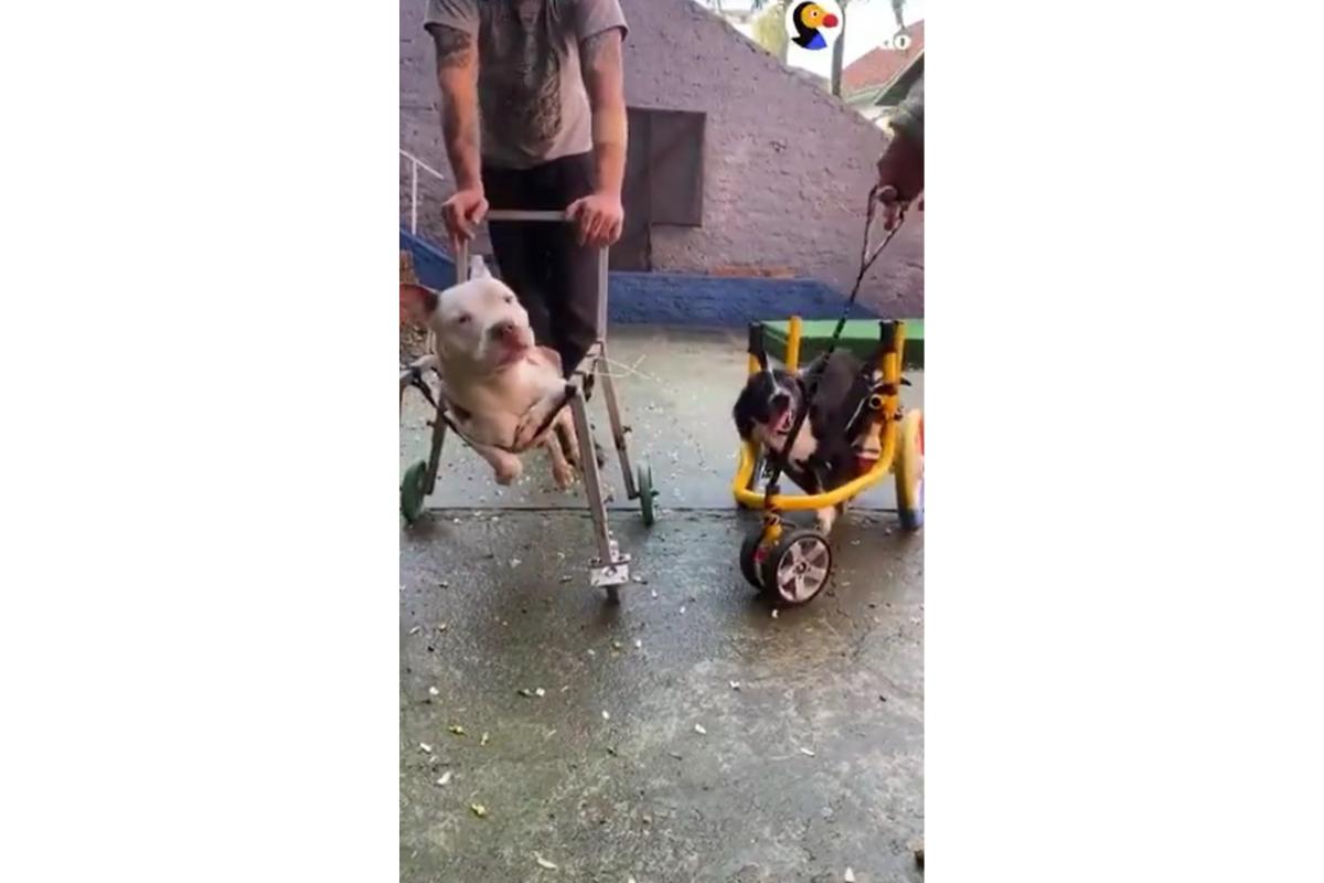 Durante uma das sessões, o cão conheceu Costelinha, um Pitbull que também usava cadeira de rodas e tem problemas muito parecidos com os de Mickey. Os tutores logo deixaram eles passarem um tempo junto, e assim, logo se tornaram melhores amigos.