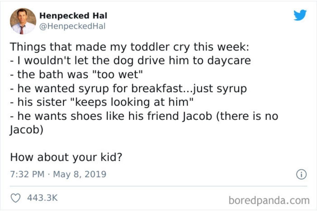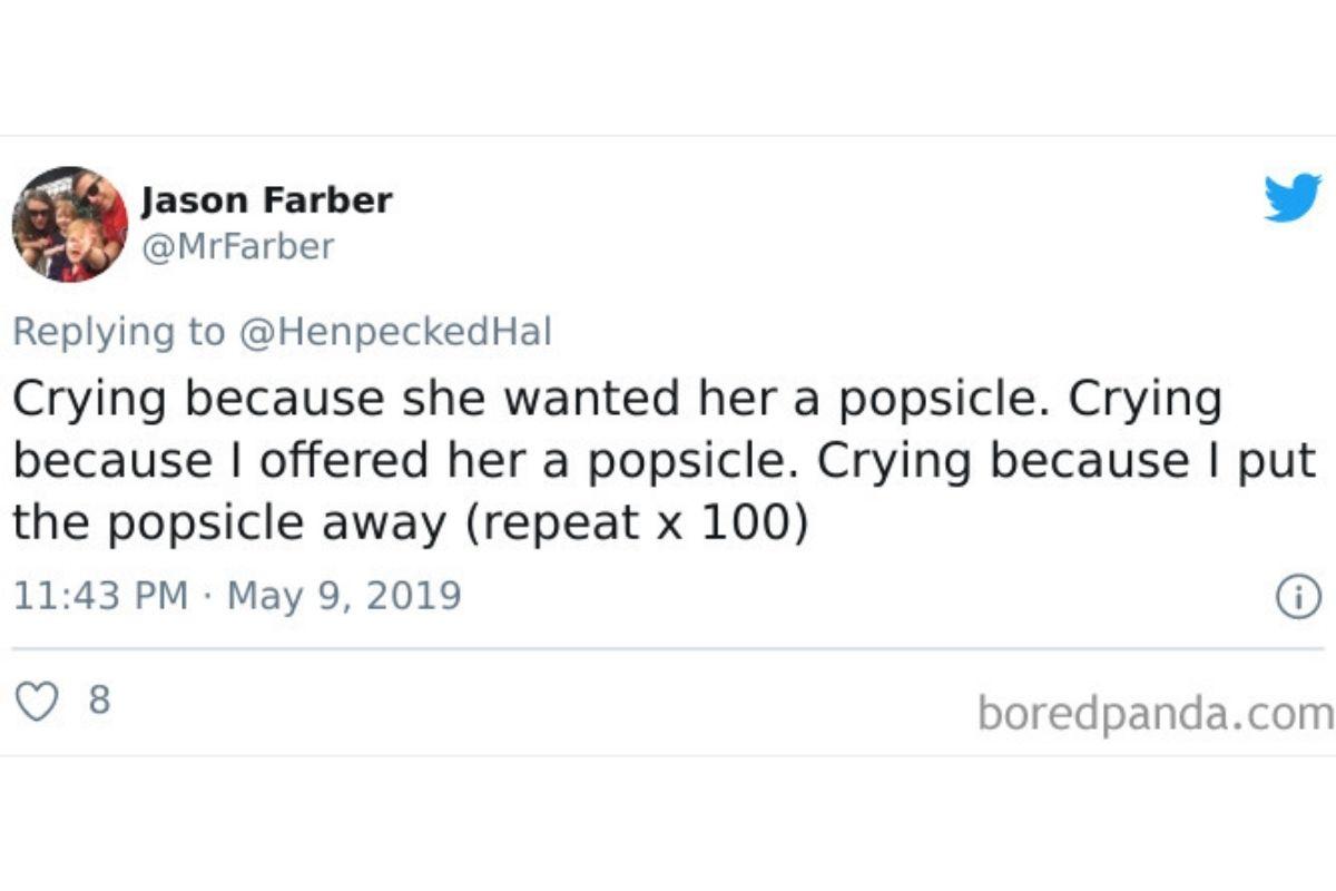 Sejamos sinceros: às vezes as crianças choram por motivos um tanto quanto bizarros – ou, até mesmo, sem motivo! Alguns pais decidiram ir até o Twitter para compartilhar as razões mais estranhas que fizeram com que seus filhos chorassem. O site norte-americano Bored Panda reuniu algumas dessas publicações e você provavelmente vai se identificar com esses relatos! Veja alguns abaixo: