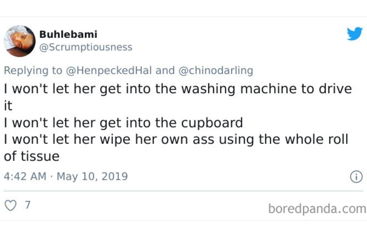 Eu não deixei ele limpar o próprio bumbum usando a caixa inteira de lenços”.