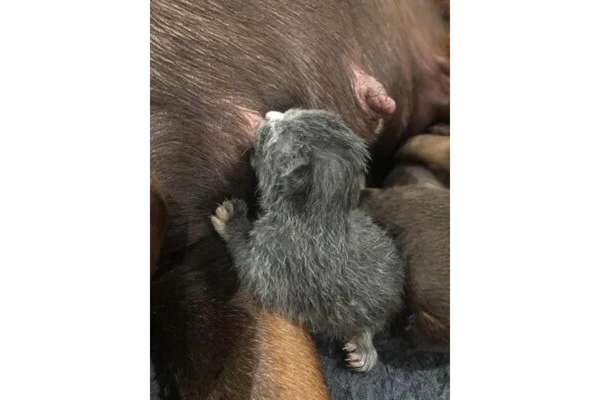 Ao retornar no mesmo dia mais tarde, o animal permanecia ali e parecia estar com frio. Naquele momento ela decidiu testar se a cachorra aceitaria adotar mais um filhote, já que disse em entrevista ao Newsweek que Ruby “sempre foi muito bem com outros animais bebês”.