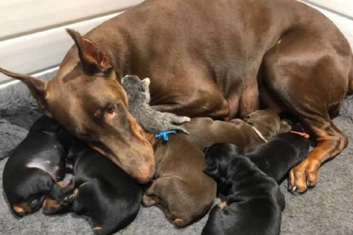 Os humanos realmente têm muito o que aprender com os animais. Ruby, uma Doberman Pinscher, deixou a dona Brittany Callan muito orgulhosa e feliz com uma atitude que tomou. Poucos dias após dar à luz seis filhotes, adotou mais um.