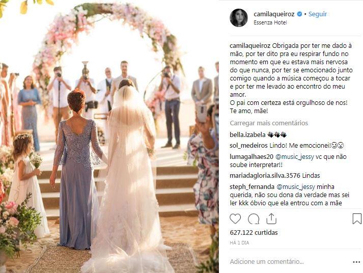 Nesta quarta-feira (29), Camila postou no Instagram uma foto especial com a mãe no momento em que as duas estão caminhando em direção ao altar.