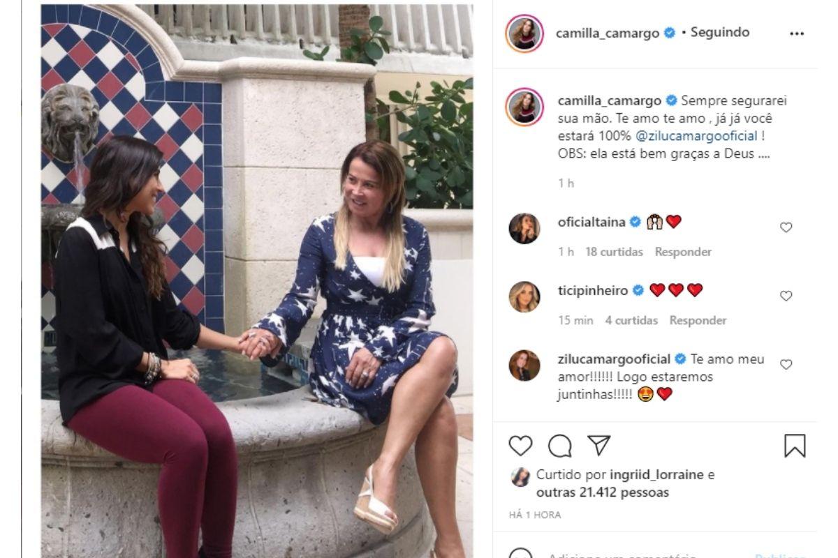 Camilla Camargo usou as redes sociais neste domingo, 21 de março, para falar um pouco sobre a saúde da mãe, Zilu, que testou positivo para a Covid-19. No Instagram, Camilla compartilhou uma foto ao lado da mãe e falou um pouco sobre a saúde dela. “Sempre segurarei sua mão. Te amo te amo , já já você estará 100% @zilucamargooficial ! OBS: ela está bem graças a Deus ….”, escreveu ela, ao compartilhar uma foto das duas de mãos dadas.