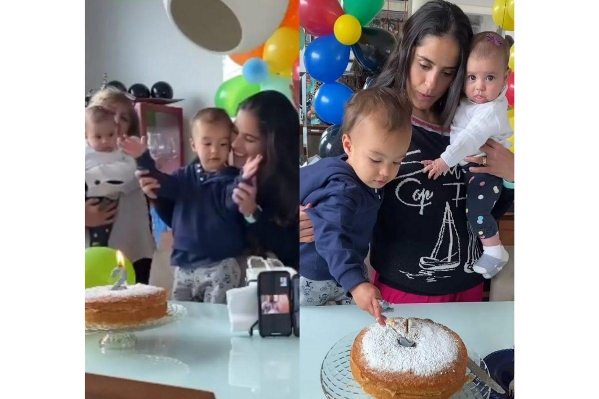 Ela providenciou um bolo caseiro, bexigas coloridas e a presença dos avós paterno do menino. Nas imagens compartilhadas pela mãe nas redes sociais, ela aparece cantando parabéns com o filho no colo. “Dois aninhos do amor da minha vida”, começou.
