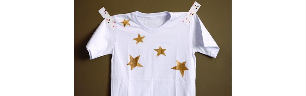 A nossa embaixadora Estéfi Machado ensina a fazer uma camiseta supercriativa, com ajuda das crianças, para esse Ano Novo. Aposto que elas vão adorar colocar a mão na massa. Para isso, você irá precisar de alguns materiais: estilete, papel contact, tinta de tecido dourada e uma esponja de limpeza.