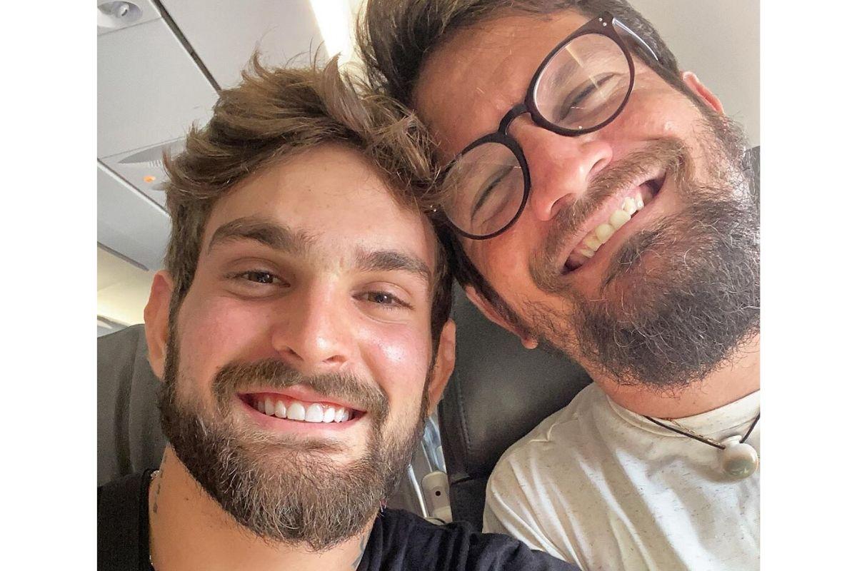 Em publicação, pai e filho estão embarcando para uma viagem para participar do Festival Virada de Salvador. Vale lembrar que João é fruto do relacionamento com a modelo Luiza Hermeto.