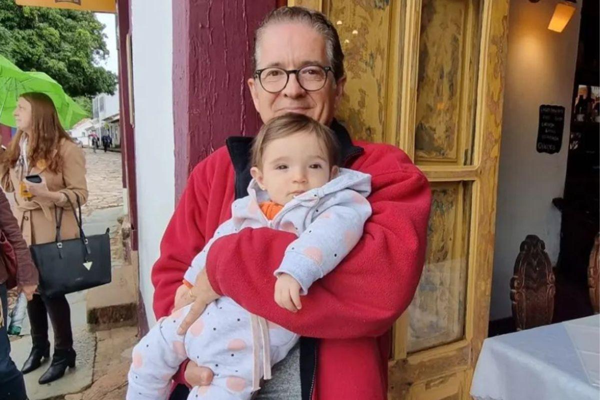 O jornalista Carlos Tramontina decidiu usar as redes sociais para mostrar uma foto raríssima ao lado da única neta, Alice, de 1 ano. Na publicação, ele está ao lado da esposa, Rosana Gerab Tramontina.