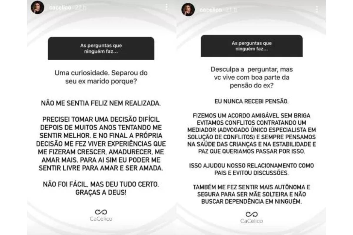 Carol Celico abriu o jogo sobre a vida pessoal nas redes sociais. Nos stories do Instagram, a empresária pediu que os fãs enviassem quaisquer perguntas referentes à carreira, relacionamentos e futuro. Os internautas, então, não deixaram de questioná-la sobre o divórcio com Kaká – e foram respondidos com sinceridade.