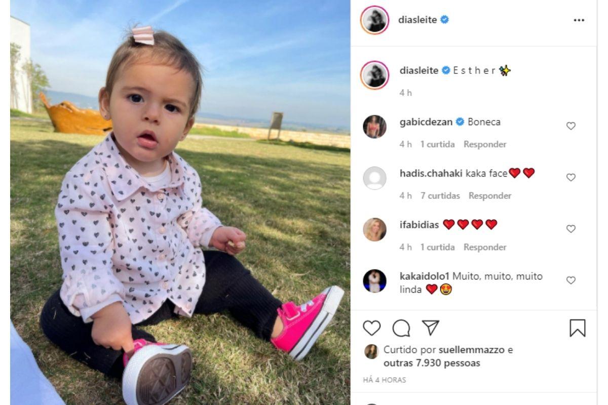 Carol Dias Leite usou as redes sociais nesta segunda-feira, 28 de junho, para compartilhar uma foto da filha, Esther, fruto do relacionamento com o ex-jogador de futebol Kaká. Na imagem, publicada pela modelo no Instagram, a bebê aparece sentada em um gramado.