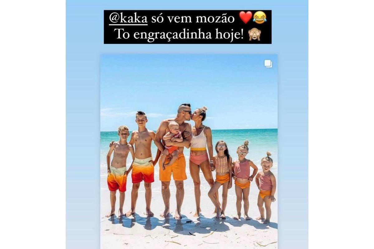 No Instagram ela compartilhou uma foto de uma família com vários filhos. Na legenda, a modelo, acabou falando sobre ter mais bebês com o marido “Só vem, mozão (sic). Estou engraçadinha hoje”, brincou ela. Um Pouco mais tarde a mãe compartilhou uma foto em que a filha aparece brincando.