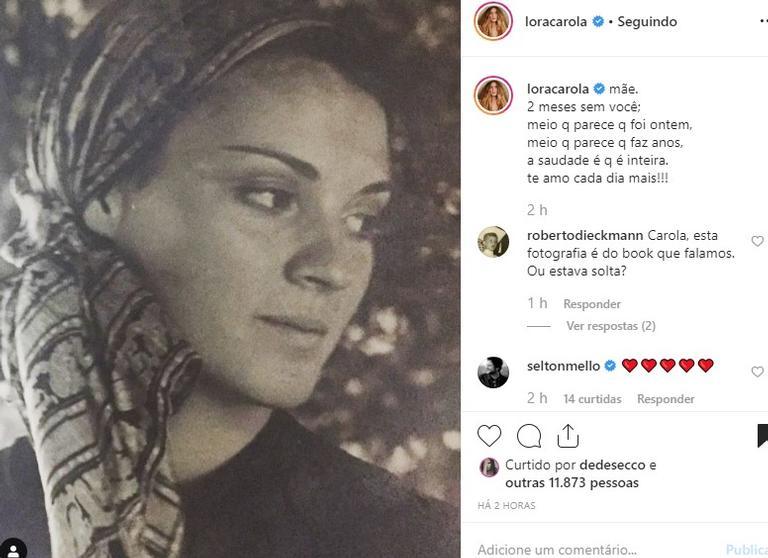 Maíra morreu dormindo, em agosto passado. Recentemente, Carolina fez um texto emocionante em homenagem à mãe. “3 meses, 92 dias pra ser exata. O que é o tempo e quanto tempo cabe no tempo. O tempo que passa rápido e o tempo que passa devagar. O tempo que engole tudo o que não vamos viver juntas e que devolve lembranças de tudo que passamos. Ah, o tempo, que às vezes melhora e às vezes sufoca. 2.208 horas que parecem ontem e também uma década. Que parece breve e parece infinito… Mãe, você faz falta”, desabafou.
