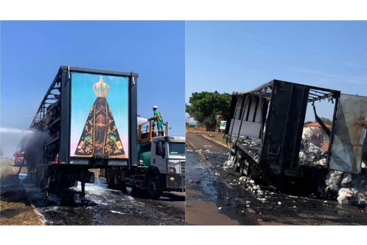 Nessa quinta-feira do dia 28 de julho, uma carreta que transportava fardos de algodão pegou fogo, enquanto ultrapassava o percurso da Rodovia Federal 267, em Bataguassu, Mato Grosso do Sul. A parte de carga do veículo foi completamente consumida. No entanto, um painel, acoplado à carreta, que carregava a imagem de Nossa Senhora Aparecida ficou intacto.