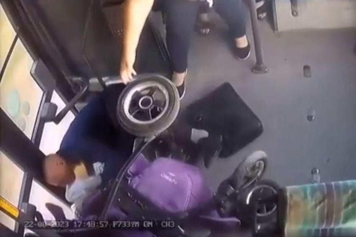 Um bebê de apenas seis meses caiu ao lado da porta de um ônibus que estava em movimento e o momento gerou pânico. Tudo aconteceu após o carrinho de bebê em que ele estava deitado tombar depois de o automóvel realizar uma curva repentina. O caso aconteceu em Kaliningrado, na Rússia, no dia 22 de agosto.