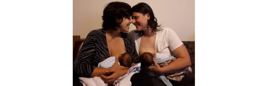 No dia 5 de outubro, os gêmeos nasceram e elas viveram a experiência única de amamentar os 2 filhos ao mesmo tempo logo após o parto. “Nossa equipe médica, formada por mulheres, pediu autorização à diretoria do hospital para ambas as mães amamentarem os bebês. Eles toparam e assim foi durante todo o tempo no hospital”, contaram em entrevista ao Razões Para Acreditar.