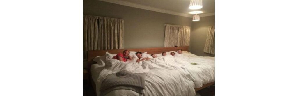 Os pais, irlandeses, kim e Ryan Constable resolveram achar uma solução divertida e prática para garantir um sono gostoso e seguro para seus quatro filhos: uma cama que coubesse todo mundo. Segundo os pais o sono compartilhado fortalece os laços afetivos e traz benefícios na criação das crianças.
