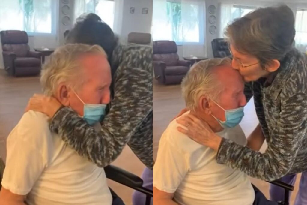 Ele ainda se declara: “Eu não achei que chegaria aqui. Senti tanto a sua falta. Ah, você está bem. Eu te amo muito! Por 60 anos, eu fiz algo certo”. Na legenda, a página avisa para quem assiste se preparar para emoção. “Casados por 60 anos…  215 dias separados… mas finalmente reunidos! Nós pudemos testemunhar esses dois ‘pombinhos’ se vendo e se abraçando pela primeira vez desde a pandemia. Peguem os lencinhos!”, escreveram.