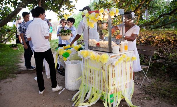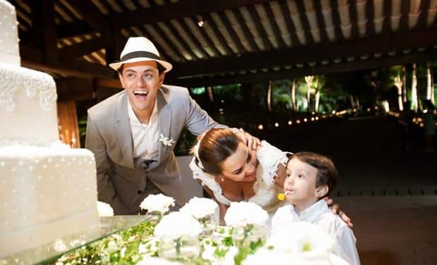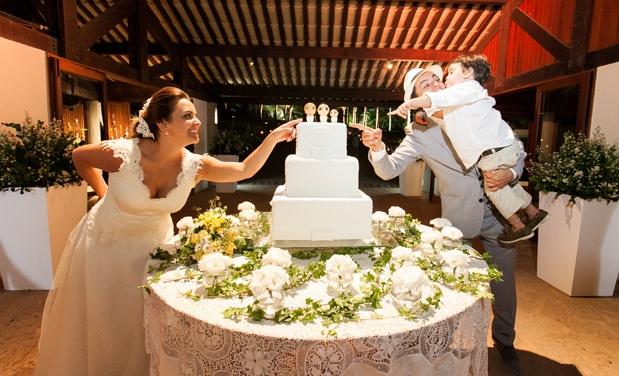 A festa foi completamente pensada de forma que Gabriel e todas as outras crianças pudessem participar e aproveitar. “Fiz área kids e menu especial. Me preocupei com o horário também, pois queria que fosse cedo para Gabriel poder curtir com a gente. Também o incluímos no enfeite do bolo, juntamente com os noivinhos”, conta Nanna.