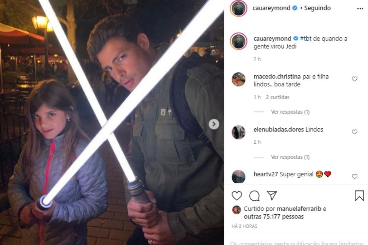O ator Cauã Reymond usou as redes sociais nesta quinta-feira, 15 de outubro, para compartilhar uma foto rara ao lado da filha, Sofia, de 8 anos, fruto do antigo relacionamento com a também atriz Grazi Massafera. Nas imagens, os dois aparecem brincando com Sabres de Luz inspirados na saga de filmes Star Wars.