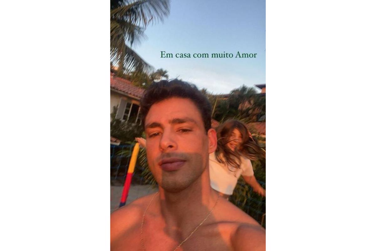 No registro, o ator está no jardim da mansão no Rio de Janeiro, e a filha Sofia aparece atrás do pai pulando em uma cama elástica e se divertindo muito. Ao compartilhar o momento paterno, Cauã aproveitou para se declarar à filha. “Em casa com muito amor!”, escreveu na legenda.